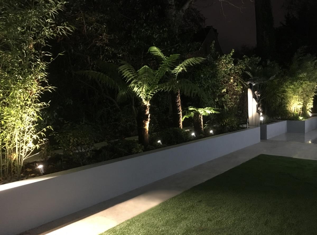 Their bold form were also ideal for uplighting, and along with the African sculpture, and bamboo, provided a dramatic backdrop to the garden after dark.